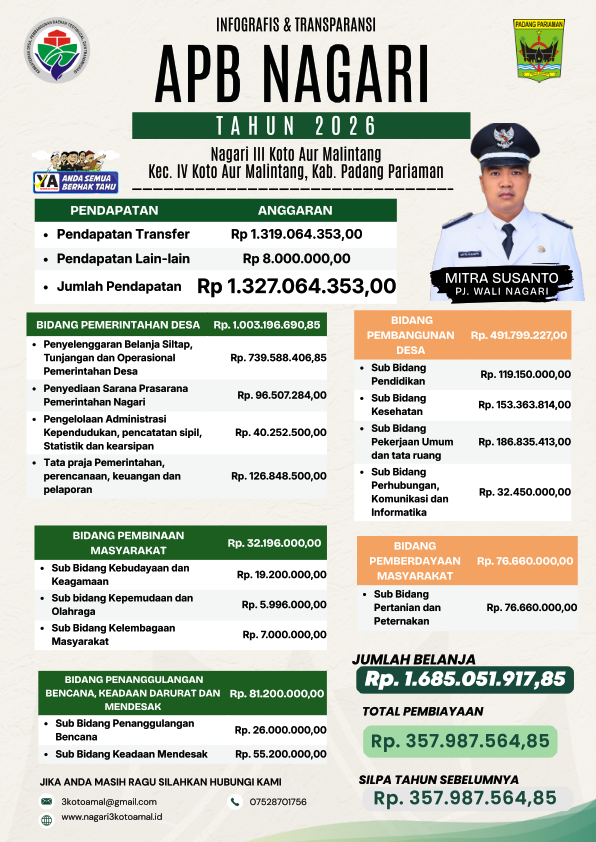 Anggaran Pendapatan Belanja Nagari III koto Aur Malintang Tahun ...
