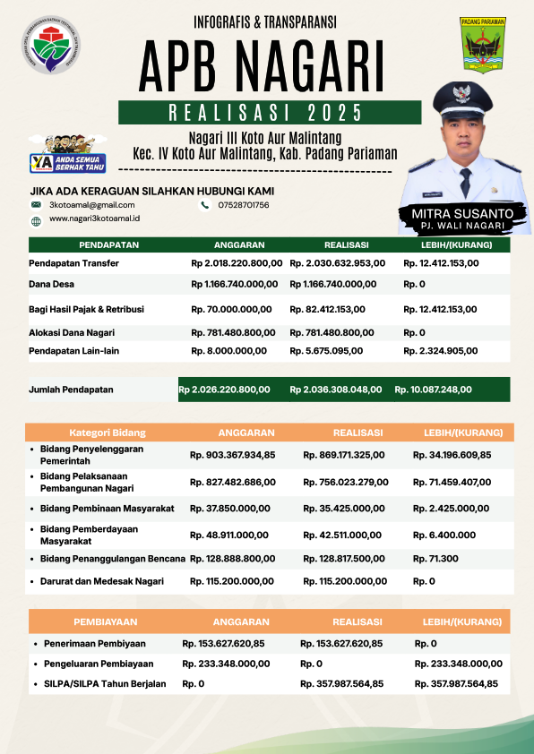 Laporan Realisasi Penggunaan Anggaran Pendapatan Belanja Nagari Tahun ...
